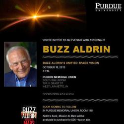Dr. Buzz Aldrin will give a presentation at Purdue University on October 16, 2013. He has worked closely with AAE Professor James M. Longuski and his grad students and has referenced their work in his new book - "Mission to Mars"
