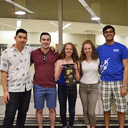 Six AAE students have earned the opportunity to test their design skills at the NASA Micro-g Neutral Buoyancy Experiment Design Teams program – Micro-g NExT – activity in Houston May 24-26, 2017. The Purdue team spent the past two semesters developing a tool to anchor an astronaut to the surface of an asteroid.