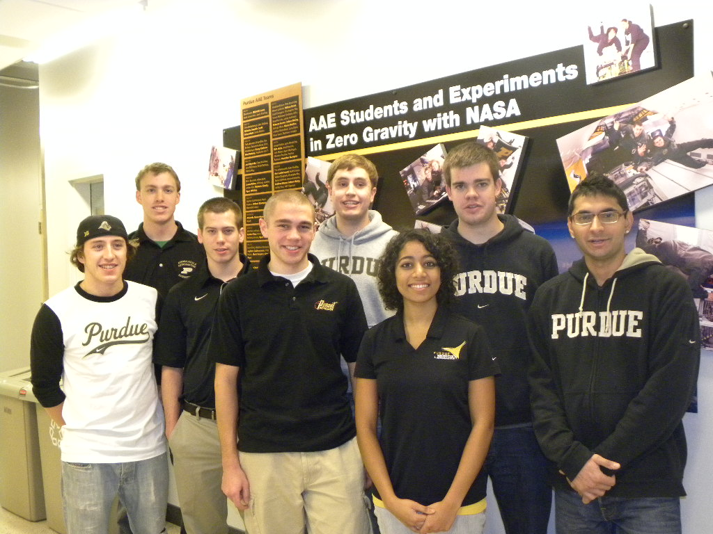 The team of Paul Frakes, Dan Kolenz, Mike McCarthy, David Lynch, Sirisha Bandla, Raj Dua, Austin Hasse, Matthew Hill, and Zachary Richardson is Purdue’s 45th successful team in NASA’s RGSFOP since the program began in 1996.  Purdue undergraduate students have made Purdue the leader in participation in this competitive prestigious national program.  The team has worked since August in experiment design, spacecraft propellant system details, K-12 outreach, proposal writing, and fabrication of prototypes to show the feasibility of the unique parts of the proposed experiment construction techniques.