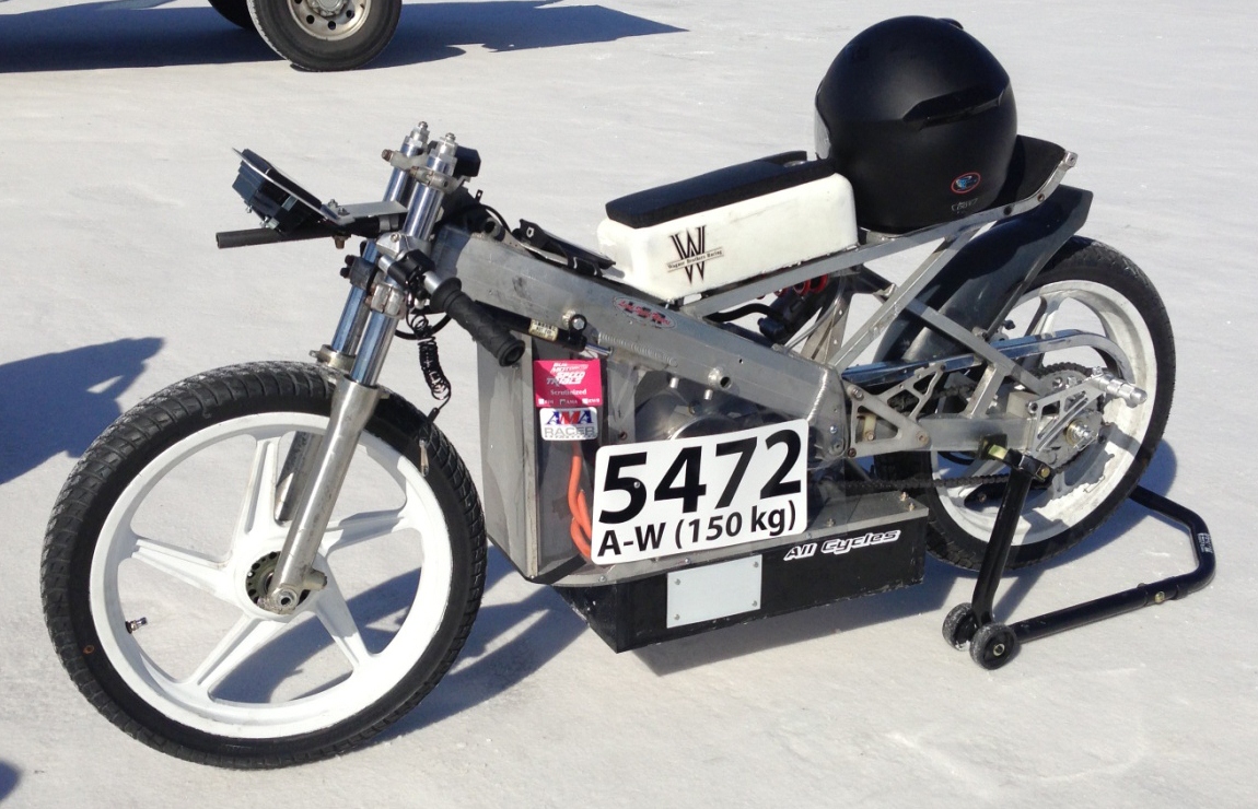 A-W 150 kg custom built electric motorcycle, no streamlining, under 150 kg weight