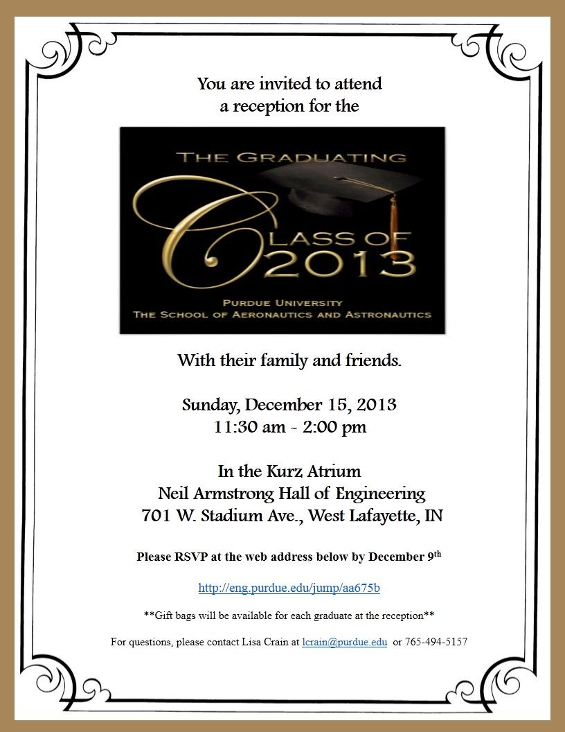 You are invited to attend the reception for the Graduating Class of 2013. Please RSVP by December 9th - details below