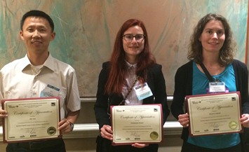 Photo caption, from left: Dr. Min Xue, Christabelle Bosson, and Shannon Zelinski with their best paper award certificates.
