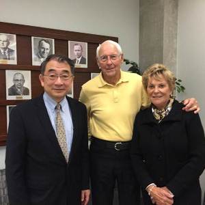 Photo caption: from left, Dr. Tom I-P. Shih, Professor and Head of the School of Aeronautics and Astronautics; Col. Charles C. "Charlie" Bock, Jr., USAF (BSAE’49); and Mrs. Joyce Bock.