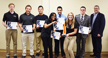 Orbital ATK chose a winning team for each project. Certificates were presented to the students during the Fall 2016 meeting of AAE’s Industrial Advisory Council by Dave McGrath, Orbital ATK’s Director of Systems Engineering and IAC member.