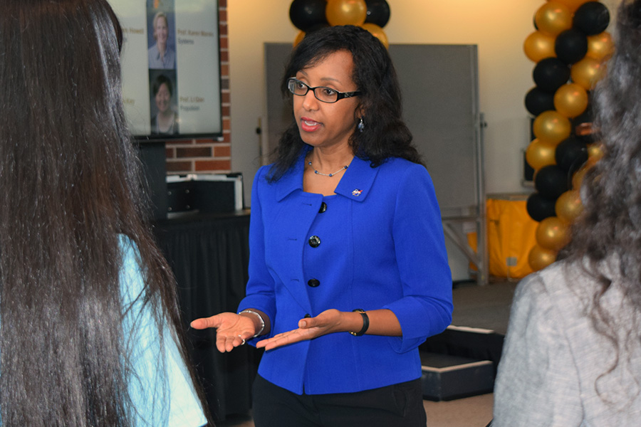 McGowan delivered the NASA keynote talk — she is NASA’s Senior Engineer for Complex Systems Design, working out of Langley — and charged students to embrace diversity in many ways, not just demographically but also in exploring diversity of opportunities available in the aerospace profession and in defining success in their own way. She’s shaped by her Trinidadian roots, and the culture she was raised in, she says. Her parents, Kenneth and Merle, instilled never to associate anything she couldn’t change about herself, demographically speaking, with competence or ability. McGowan told students they should not allow anyone’s assumptions about them to limit them. Rather, McGowan reminded students that their uniqueness "can be a blessing to your team.”