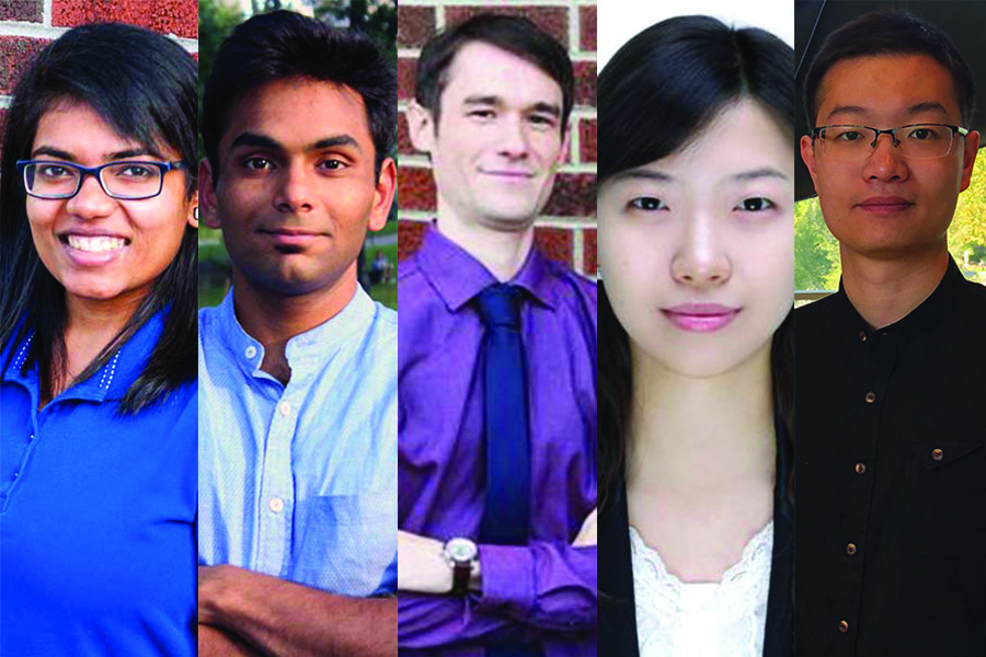 (From left) Divya Bhargava, Akshay Deshpande, Georgios Georgalis, Jooyoung Lee and Xuan Wang