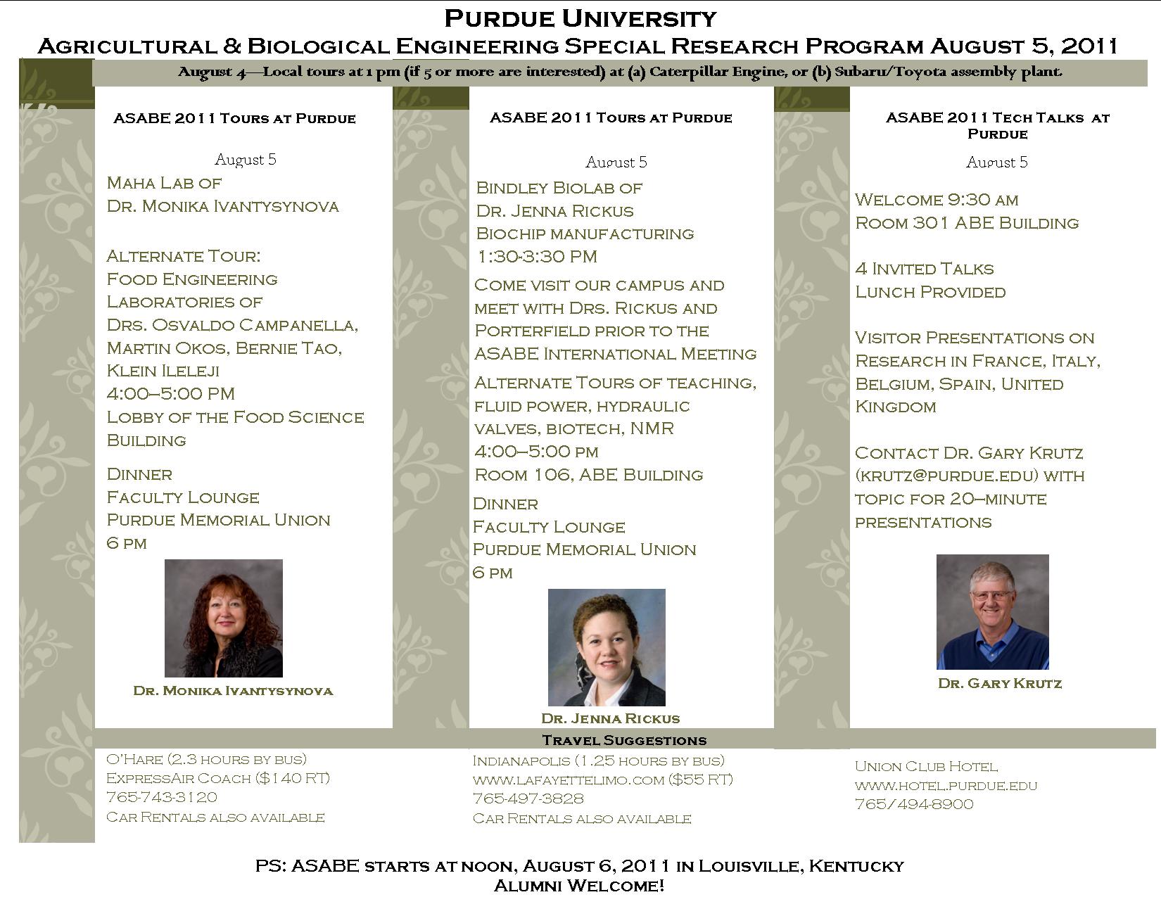 Purdue ABE to Host Special Research Program in Conjunction with ASABE 2011