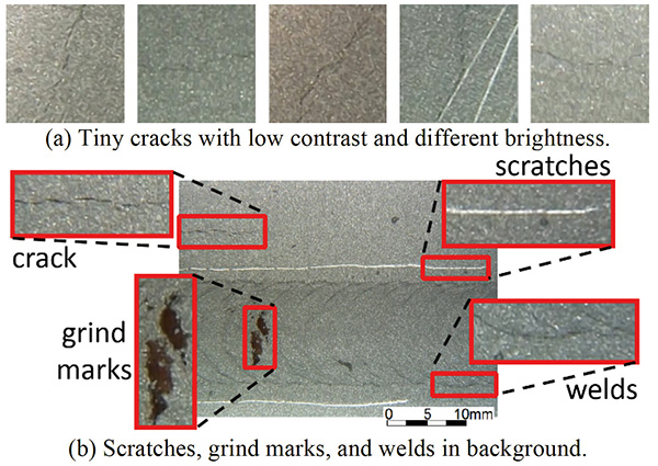 Other automatic crack detection algorithms under development often do not detect cracks in metallic surfaces because the cracks are usually small, have low contrast and are difficult to distinguish from welds, scratches and grind marks.