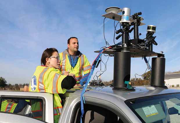 “Historically, our data-collection practice has been to mount a GoPro to the car,” Sturdevant says. “You don’t see side-to-side well, and you cannot measure distances across lanes under live traffic — so you just eyeball it. LiDAR instrumentation creates something resembling a 3-D wire frame model of the terrain. It allows us to measure to almost an inch.”