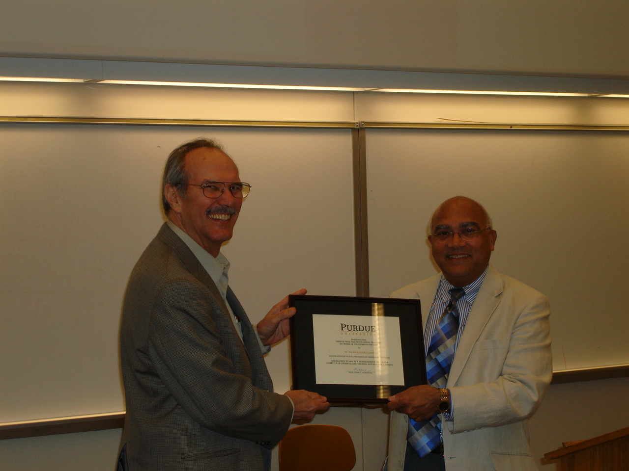 In recognition of his excellence in teaching, Dr. W. Nicholas Delgass was awarded the 2007 Shreve Undergraduate Teaching Award. Professor Delgass has received the Shreve Award seven times, more than anyone in the School's history. He has also received the College of Engineering Potter and University-level Murphy teaching awards, is a member of the Purdue University Teaching Academy, and entered the Purdue University Book of Great Teachers in 2003.