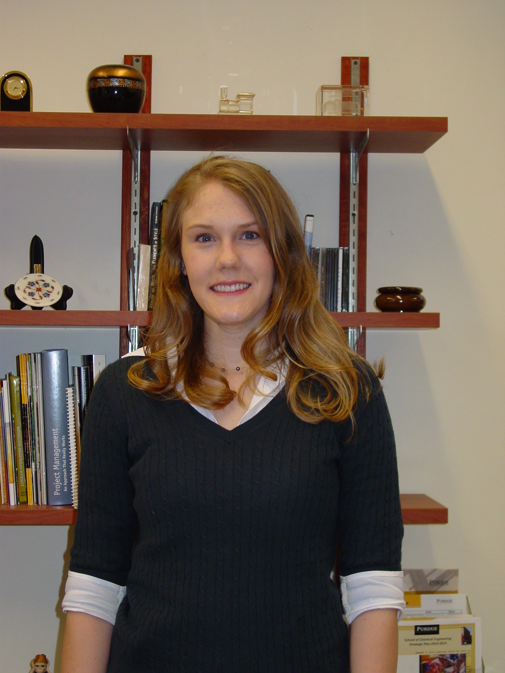 Sara Yohe joined the School of Chemical Engineering as a Graduate Student in fall 2008. She works under the direction of Professors Rakesh Agrawal, Nick Delgass, and Fabio Ribeiro. Her research interests are catalytic studies on the hydrodeoxygenation of biomass and model compounds. She is currently working on a novel biomass fast hydropyrolysis/hydrodeoxygenation process for the efficient production of liquid transportation fuels.