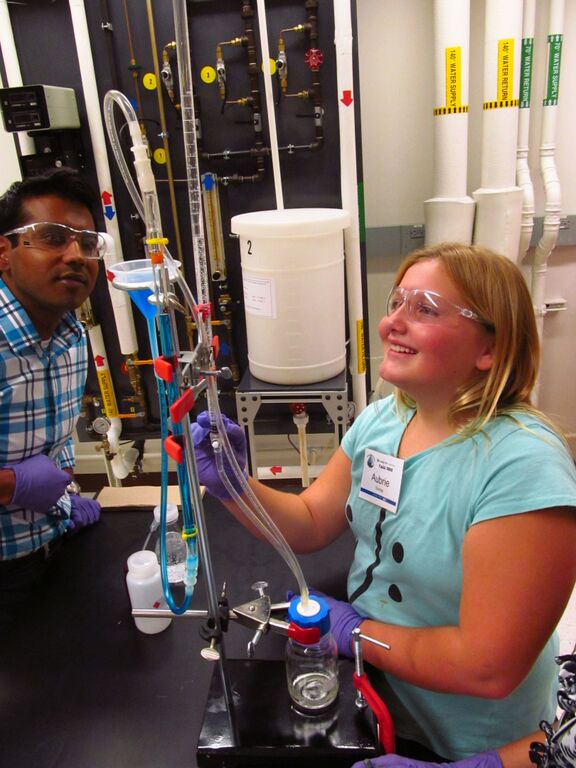 Participants learned about how catalysts are used in environmentally friendly processes, such as the conversion of chemical energy to electrical energy in an ethanol fuel cell as well as the epoxidation of propylene with hydrogen peroxide, which is an environmentally-benign (“green”) oxidant. The students also participated in hands-on laboratory activities with model ethanol fuel cells and measured rates of hydrogen peroxide decomposition in the Fundamentals Laboratory in the Forney Hall of Chemical Engineering. Additionally, student participants toured the PCC research laboratories where they learned about the instruments used to study catalytic reactions and about how catalysts are used to treat diesel engine exhaust with the aid of a cut-out display of an actual catalytic converter, provided courtesy of Johnson-Matthey.