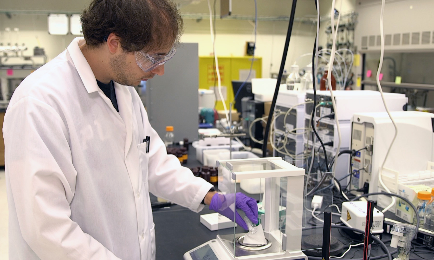 Pictured above right: John Di Iorio prepares a catalyst sample for testing in a lab-scale reactor.