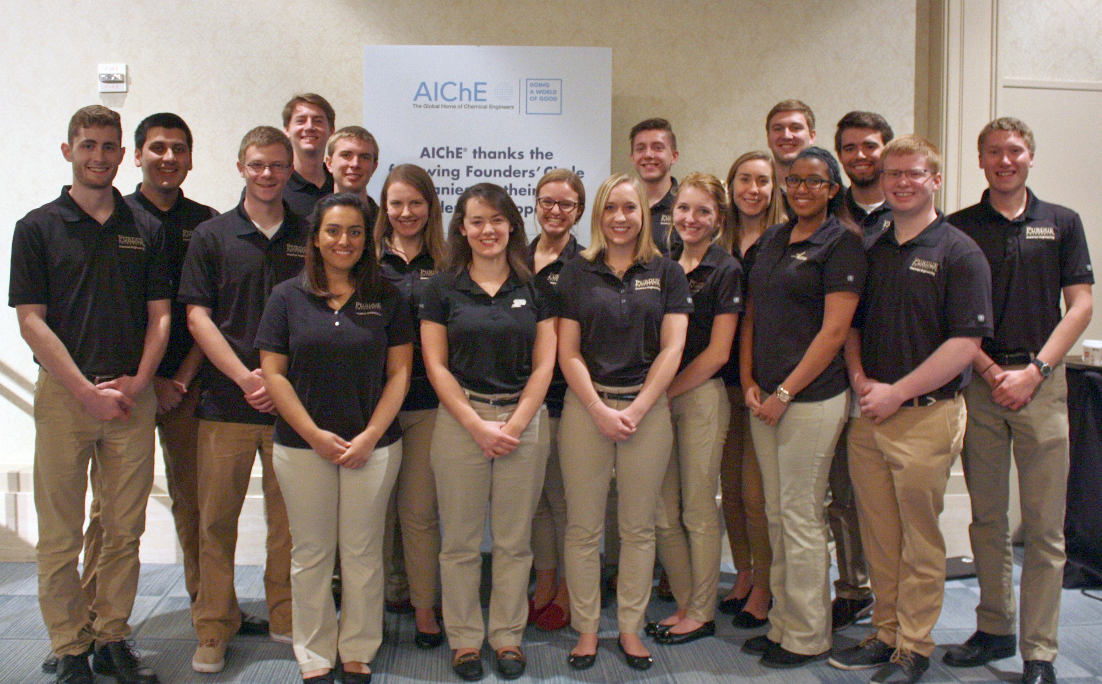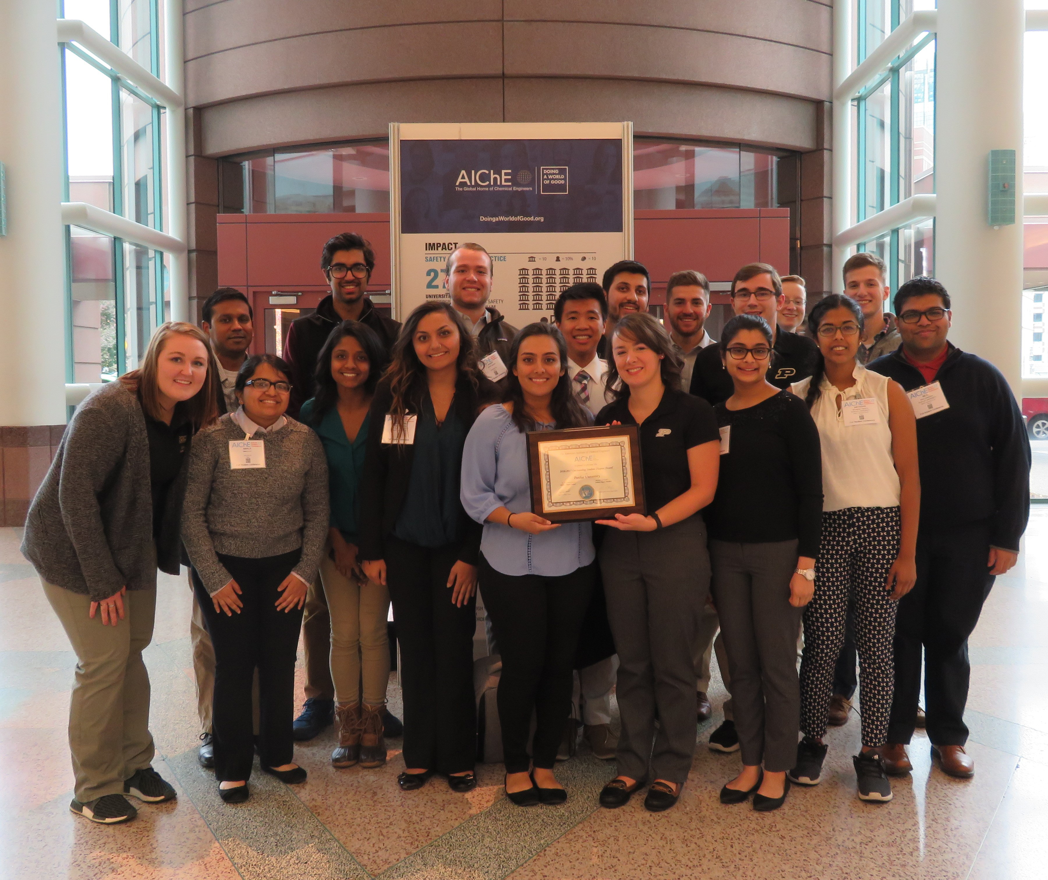 The American Institute of Chemical Engineers (AIChE) Student Chapters Committee has named Purdue AIChE as one of the recipients of a 2016-2017 Outstanding Student Chapter award. This is the second consecutive year that the student organization has been recognized with this award. Purdue AIChE student leaders were honored during the 2017 AIChE Annual Student Conference awards ceremony on October 29 in Minneapolis, Minnesota.