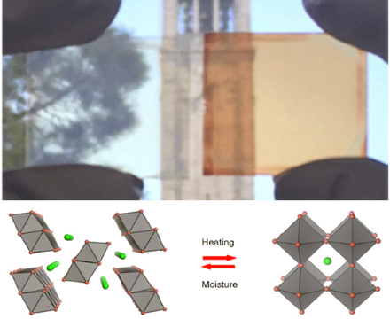 The solar cells undergo reversible transitions which are thermally driven (150 ~ 200 °C) and moisture mediated. Researchers found the cells transition between a transparent, non-perovskite phase with 81.7% visible transparency and a low power output to a deeply colored perovskite phase with a reduced transparency of 35.4% and a high power output. The solar cell features high thermal stability and fully reversible color and performance, both of which are key requirements for successfully integrating the cells into diverse applications.