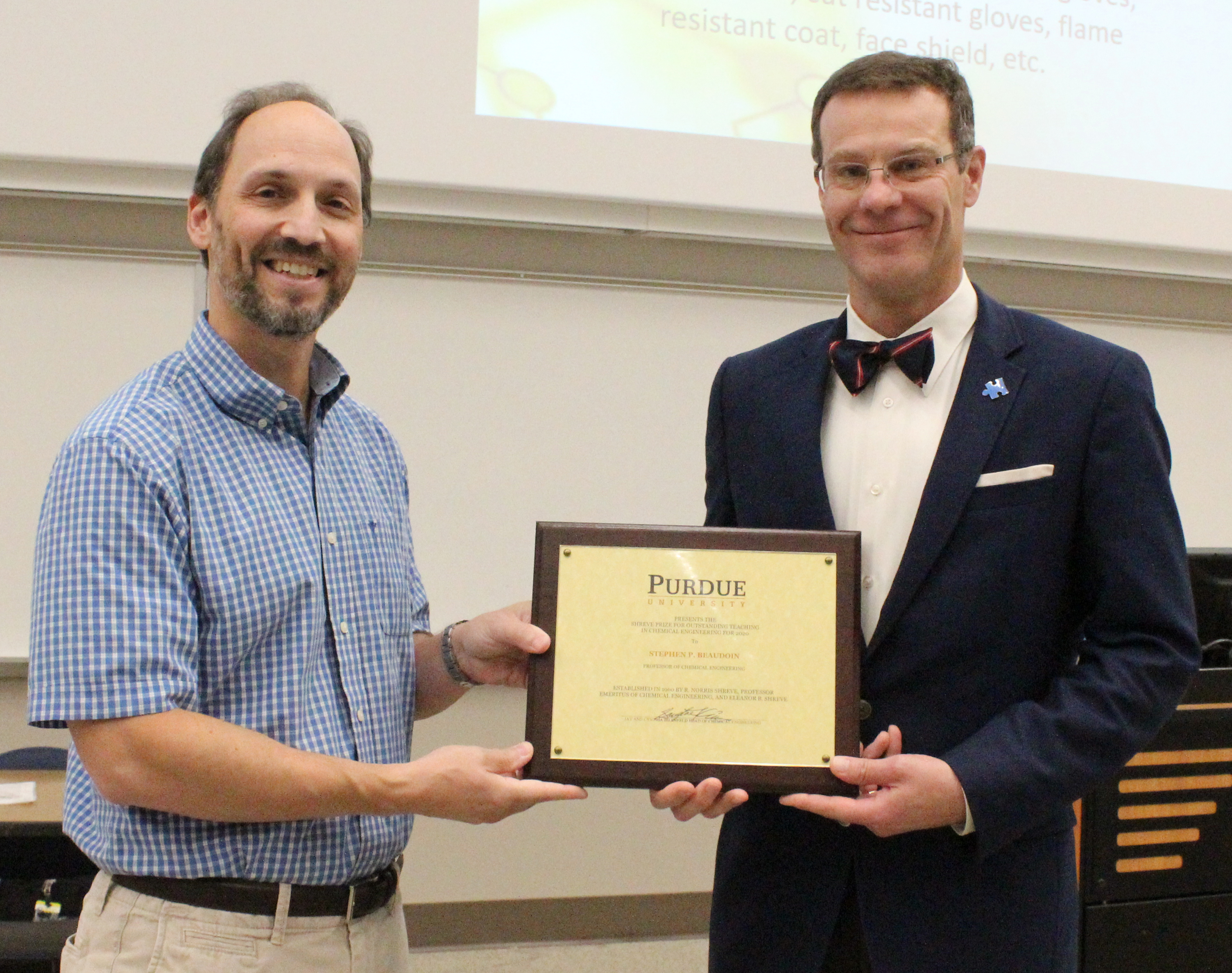 Dr. Stephen Beaudoin, Professor of Chemical Engineering, received the 2019 Shreve Award for Outstanding Teaching in Chemical Engineering, based on selection by Chemical Engineering seniors.