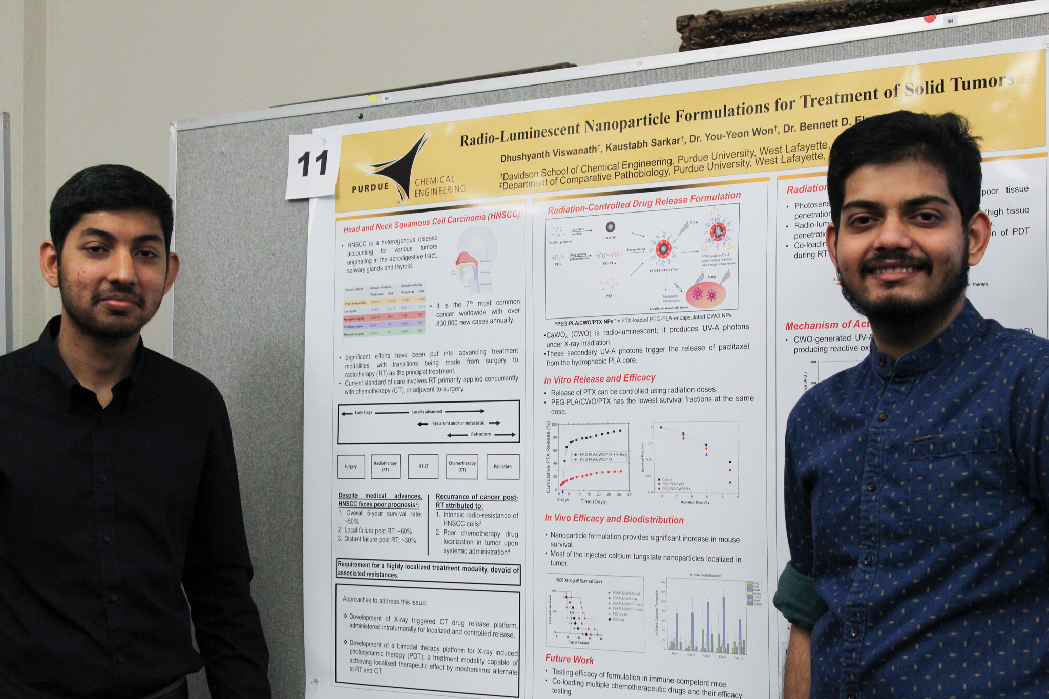 Sarkar and Viswanath are currently working on nanoparticle drug delivery systems that can be intratumorally injected to provide combination chemotherapy/photodynamic therapy and radiotherapy for treating locally advanced head and neck cancers. The formulations have the potential to address several shortcomings of systemic chemotherapy/radiotherapy currently used in clinics.