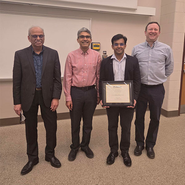 Akash Nogaja, who completed a doctoral degree in chemical engineering in the summer of 2025, recently received the Faculty Lectureship Award from the Davidson School of Chemical Engineering.