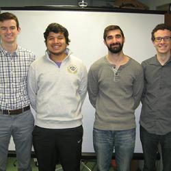 They took home the "best use of TI wireless technology" award. The students, who carried out the project as undergraduates, were team leader Jacob R. Stevens, who is entering a Purdue doctoral program; team members Erik Swan, who has graduated; Manik Singhal, who is entering a Purdue graduate program; and Everett Berry, who has graduated. They were advised by Dr. Matthew Swabey, Deputy Director of Instructional Laboratories.