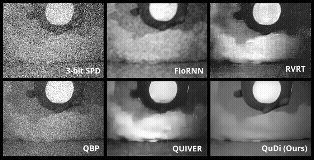 In extensive tests on synthetic and real QIS data, QuDi delivered up to 2.4 dB peak signal to noise ratio improvement over state-of-the-art algorithms, producing reconstructions that are both visually natural and faithful to the true scene, even in extreme low-light and fast-motion scenarios.
