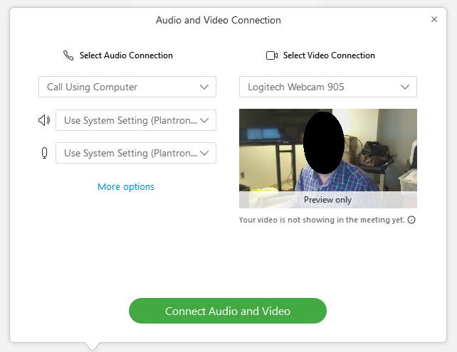 - Connect to audio and video. We suggest using your computer for the call, but a phone can be used if you have issues.