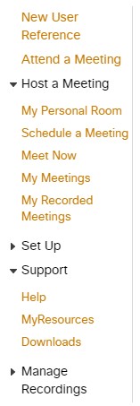 - You can click the “My Personal Room” tab on the left to start a meeting that will always be available at the URL https://purdue.webex.com/YOUR_USERNAME. Anytime you join, this meeting will become active for others.