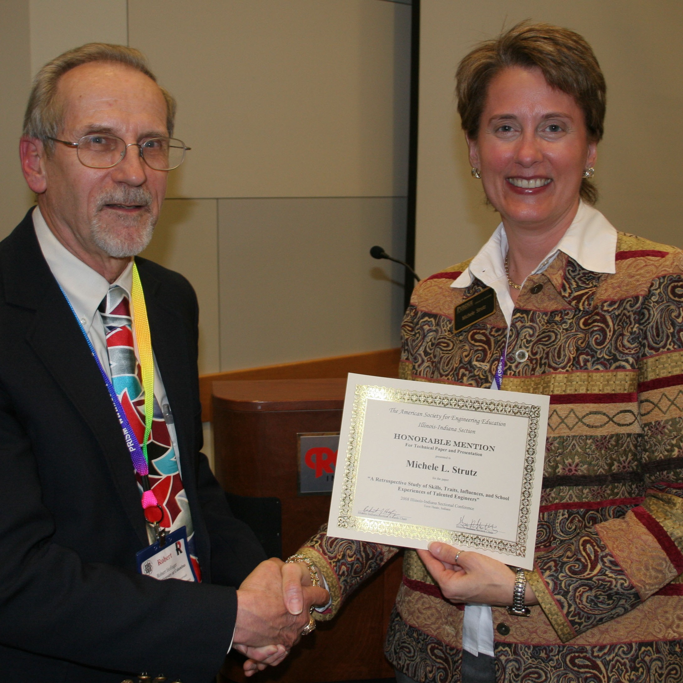 Strutz, a Purdue doctoral student in gifted education specializing in engineering education, was honored at the American Society for Engineering Education's Illinois/Indiana section conference for the paper "A Retrospective Study of Skills, Traits, Influences, and School Experiences of Talented Engineers."
