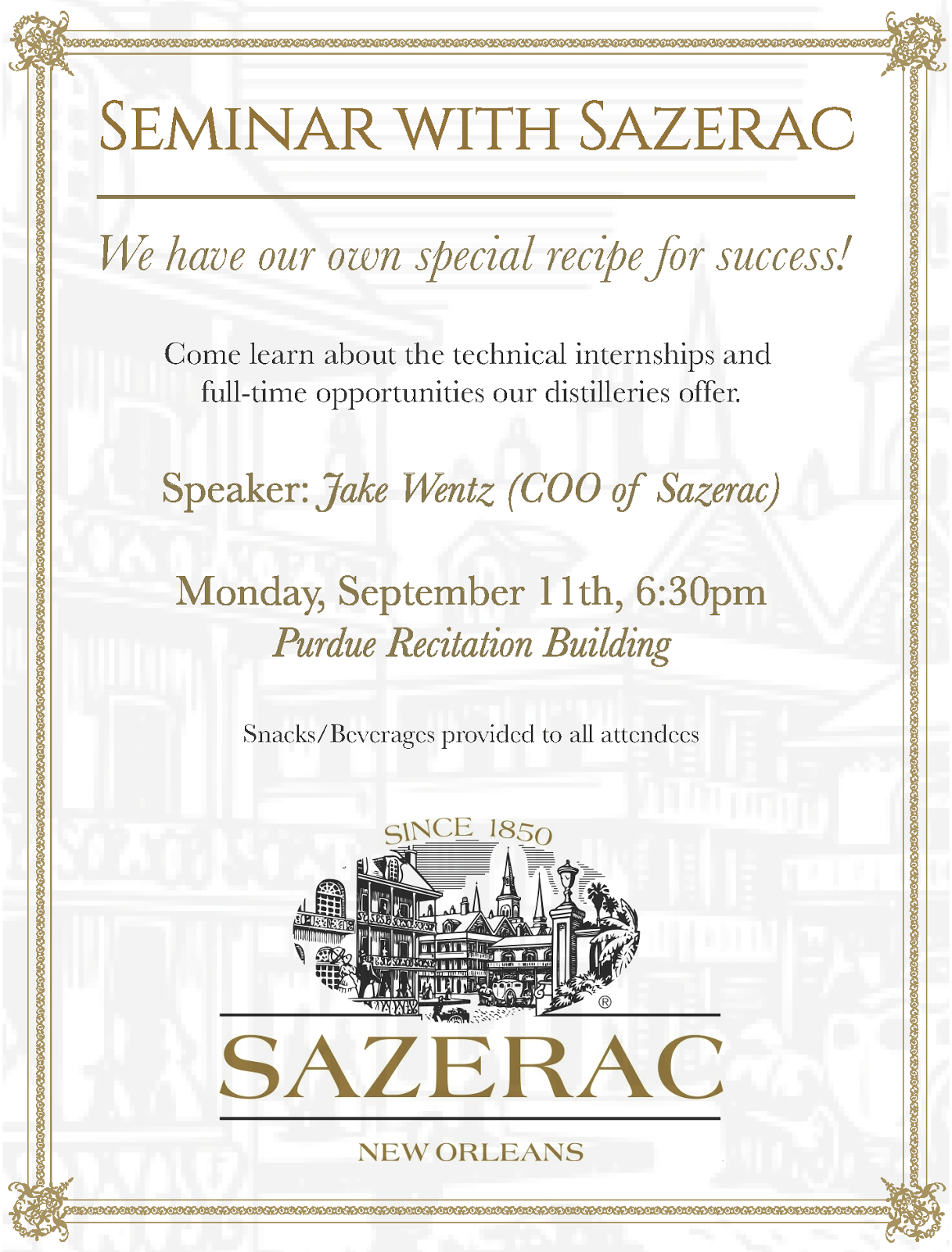 - 6:30 PM, Sazerac, Purdue Recitation Building*