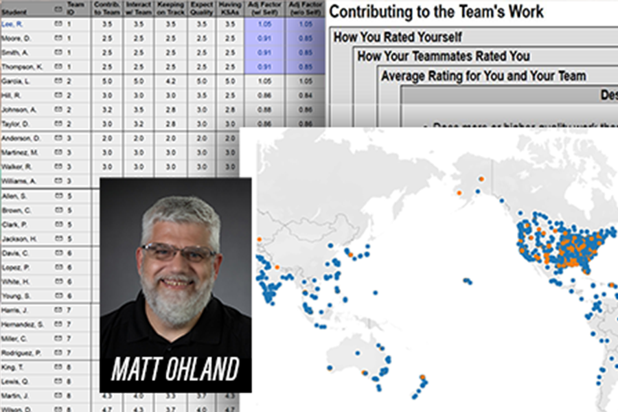CATME creator Matthew Ohland, Ph.D., the Dale and Suzi Gallagher Professor of Engineering Education and Purdue ENE’s Associate Head of Operations, brought CATME from Clemson University to Purdue in 2006. Ohland remembers what it was like 20 years ago as a young instructor trying to create and manage student teams. “I would lay hundreds of student schedules and profiles out on my dining room table and attempt to create the kind of four-person teams that experts and research tell us will have the best chance of success,” Ohland said. “That was difficult enough to do for large classrooms, but managing those teams and making sure they stayed on track was even more difficult. CATME changed all that.”