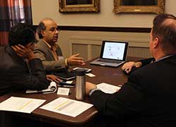 The event kicked off with a evening reception on Nov. 18, followed by a full day of presentations and discussions on Nov. 19. Ten GE representatives from various GE plants throughout the U.S. attended. Researchers presented reviews of current PRIAM projects and discussed possible future collaboration. Purdue students and faculty from many disciplines attended presentations and discussions, and Purdue students met informally with GE representatives in the afternoon. PRIAM is in the first year of a five-year research agreement between General Electric and Purdue.