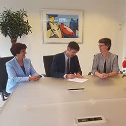 The Purdue Systems Collaboratory has formalized a partnership with Delft University of Technology (TU Delft). AAE Professor William Crossley, member of the Purdue Systems Collaboratory leadership team, recently joined Professor Paulien Herder of TU Delft's Faculty of Technology, Policy and Management (TPM) in a ceremonial signing of a letter of intent that will foster cooperation in systems education and research between Purdue and TU Delft.