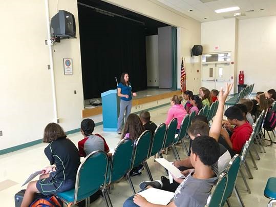 Jocelyn Dunn explaining the Wearables in Education project to middle schoolers