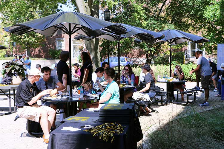 After the panel discussion, Purdue IE held a Homecoming Barbecue at de Bedout Piazza behind Grissom Hall. About 100 IE alumni, faculty, staff, and friends and family enjoyed Crabby Mike’s BBQ before the Purdue football game later that afternoon.