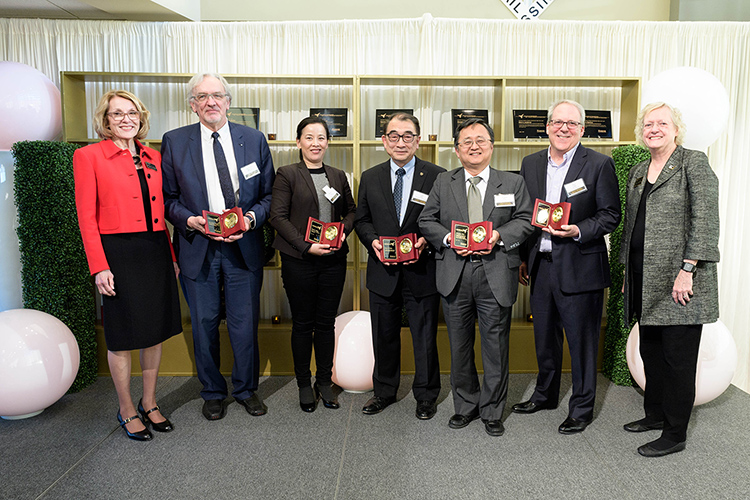 Dean Leah Jamieson (r) with IE's Paul M. Griffin (next to Jamieson) & other engineering faculty awardees at the Faculty Recognition Banquet