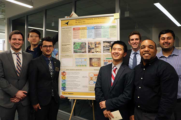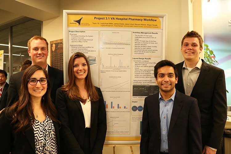 Over 250 people attended the poster exhibition in Grissom's Wang Student Excellence Center. Earlier, each team presented their findings to company representatives. IE faculty and graduate students voted on the four best projects, and these teams won a cash prize for their work.