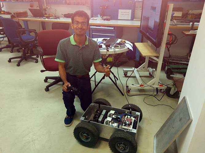 MSIE student Ashwin Nair with HUB-CI controller in Israel