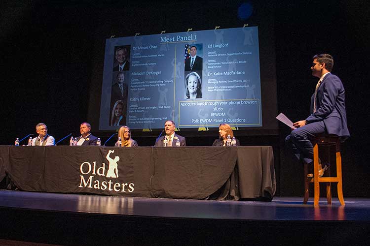 They answered prepared questions from student moderators as well as several audience questions, which were submitted online during the first 10 minutes of each panel. The questions focused on Old Masters' successes in their various careers and how they had achieved them.