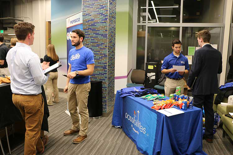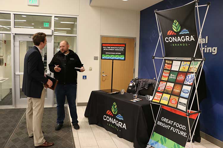Eight companies and over 160 students attended the Jan. 30 event, held in the Grissom Hall Student Excellence Center. Graduate and undergraduate students talked with representatives from Ingersoll Rand/Trane, CNO Financial, PepsiCo, Hormel Foods, IU Health, Halliburton, Boston Scientific, and ConAgra Brands.