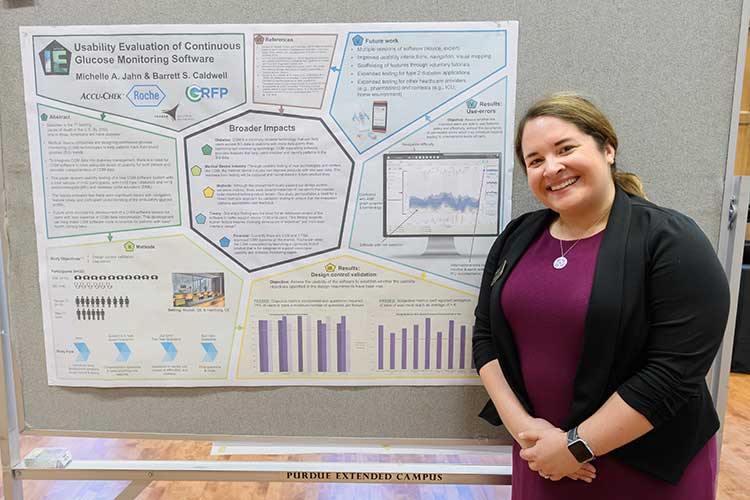 Michelle Jahn (5th-year PhD candidate, Caldwell lab) won 2nd place in the Obesity and Related Diseases category for her poster, "Usability Evaluation of Continuous Glucose Monitoring Software". This poster reviewed work from her internship experience as a human factors engineer with Roche Diabetes Care. During her internship, Jahn was responsible for managing a usability validation study in Germany, where her team tested a new software system for Roche's Continuous Glucose Monitoring (CGM) platform. The results of the usability testing helped determine recommended changes to make the software easier to use for both people with diabetes and their healthcare providers.