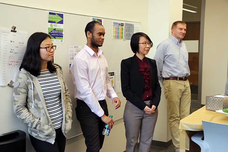 The Purdue Industrial Engineering Graduate Student Organization (IE GSO) held a reception to honor Hua Cai, assistant professor of industrial engineering, as this year’s recipient of the IE Outstanding Graduate Mentor award.