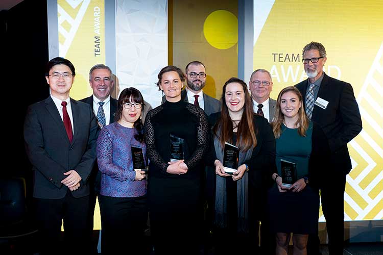 The college honored the IE Student-Alumni Mentoring Initiative Team with its Team Award at the 17th Annual Staff Awards of Excellence banquet.