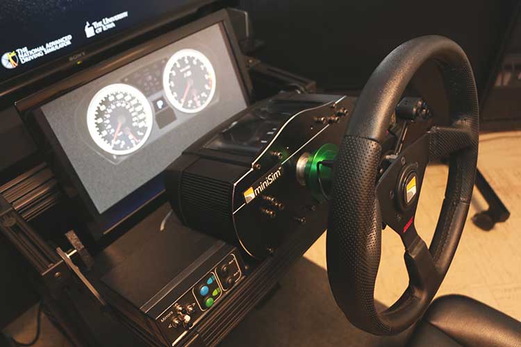 To do this, in January he moved into newly-renovated space in Michael Golden Labs (MGL) 1311. Two weeks ago a new National Advanced Driving Simulator (NADS) "miniSim" driving simulator arrived and was installed. This medium-fidelity research tool allows customization of various driving situations and scenarios in order to conduct driving-related research projects. The lab has space for four to five graduate and undergraduate students in the main area, and a separate smaller room exclusively for conducting human-subject experiments using the miniSim.