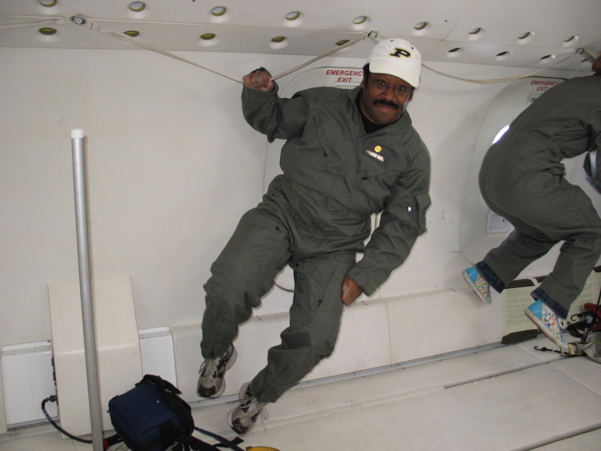 Photo of Barrett Caldwell floating in anti-gravity room