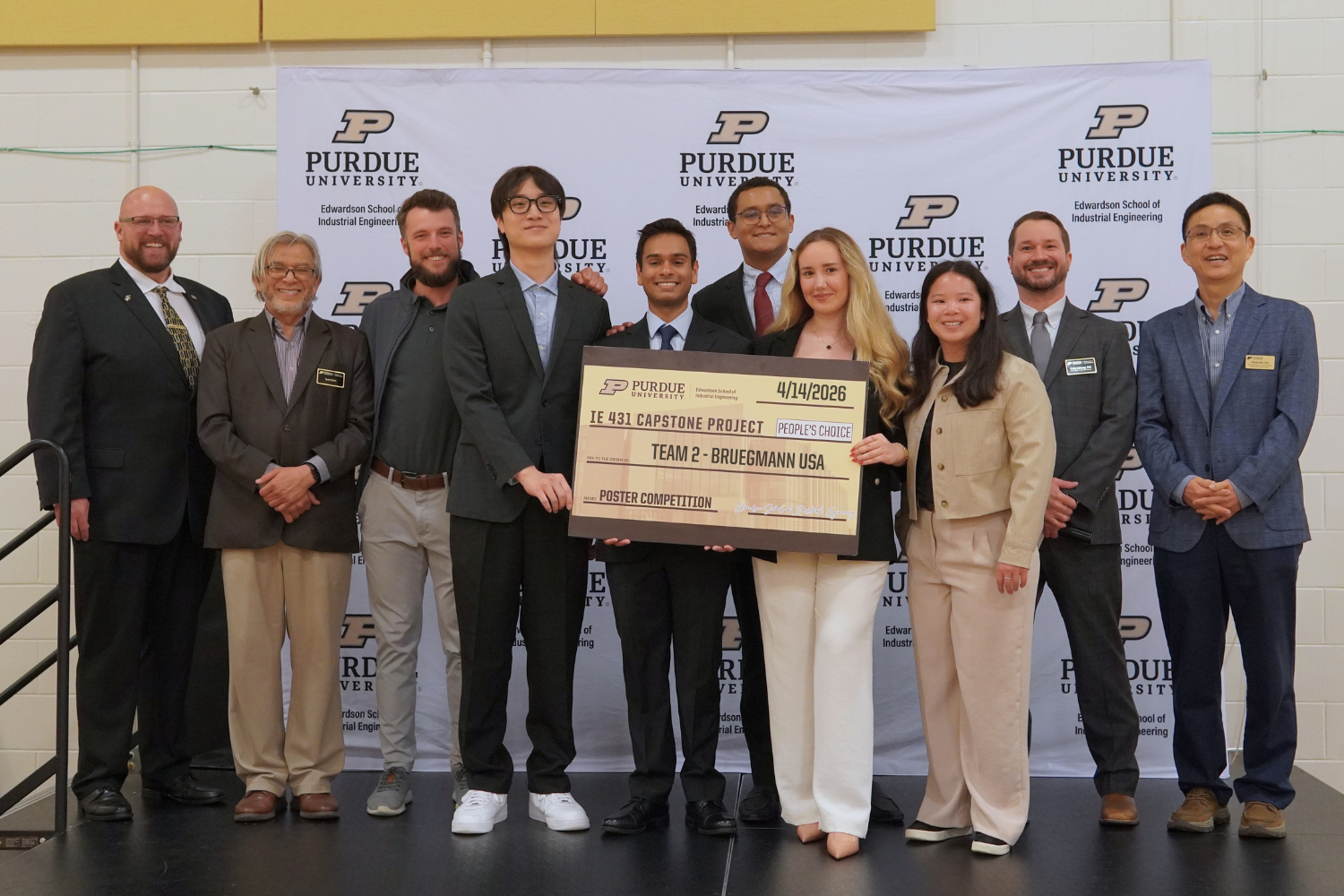 The students showcased their work at the IE 431 Poster Session & Company Day on April 14th at the Co-Rec. Thirty-six projects, each involving the collaborative work of five or more students, were featured in the Co-Rec’s Black and Gold gym. Projects came from a wide variety of industries working with companies from all over the United States. Teams competed for top prizes and the People’s Choice Award.