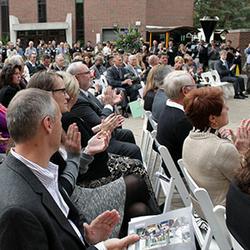 The sun came out for Industrial Engineering’s "A New Era at Grissom Hall" ceremony on an otherwise-cloudy October 9. IE alumni, faculty, staff and friends gathered at the new de Bedout Piazza behind Grissom Hall for the celebration event, along with local and state dignitaries.