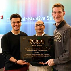 The Purdue Industrial Engineering Graduate Student Organization (IE GSO) held its annual Research Symposium on April 25 in Grissom Hall. The symposium included a graduate student poster competition and a panel discussion with four Outstanding IE (OIE) alumni.