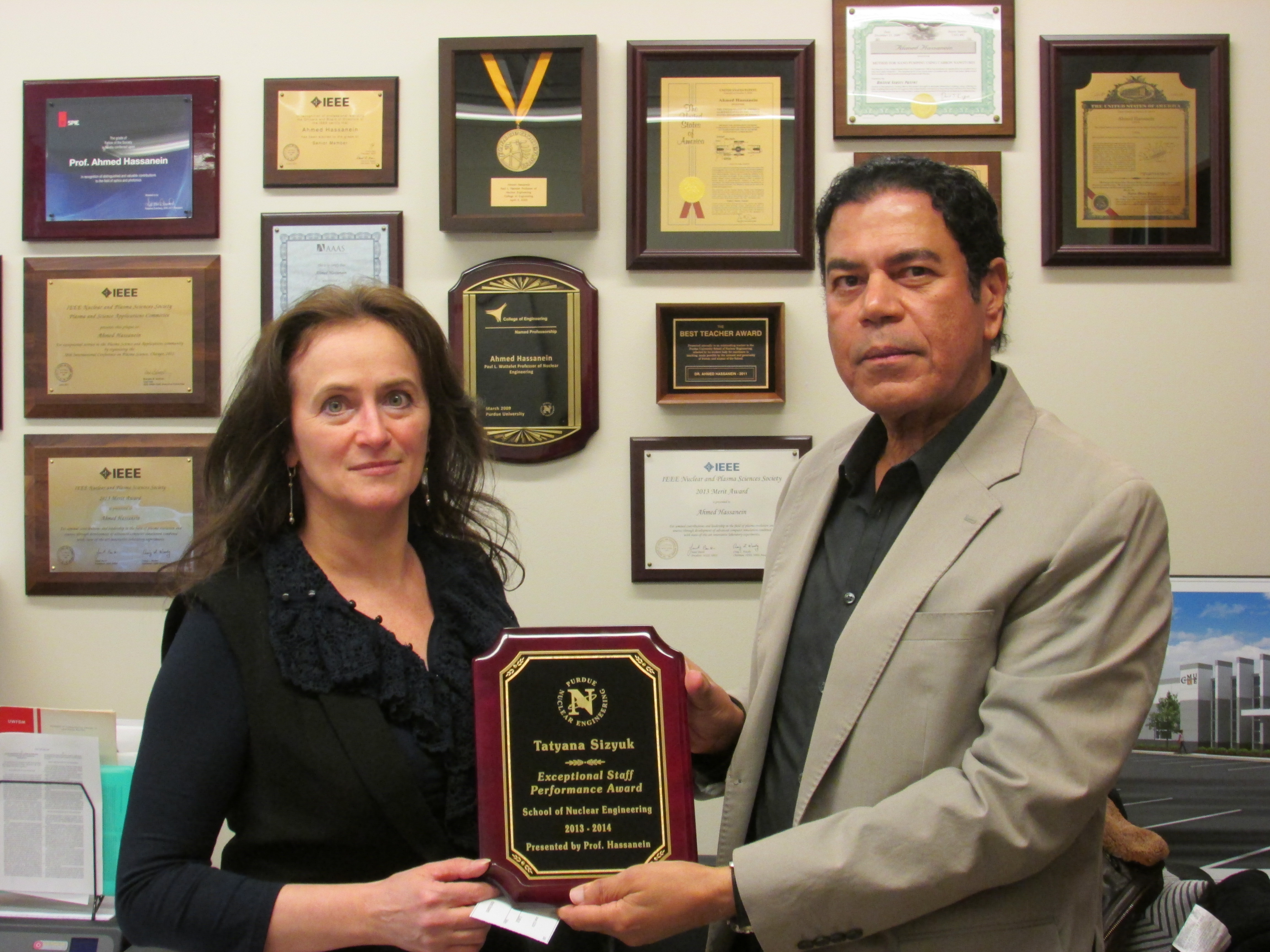 This year the award committee is proud to present the EPA to Tatyana Sizyuk, Senior Research Scientist for the School of Nuclear Engineering, with an award plaque and $2,000 check. Tatyana has been an integral part of the School of Nuclear Engineering since 2007 and she is being recognized for her excellence in research and devotion to our esteemed programs. Congratulations again to Tatyana.
