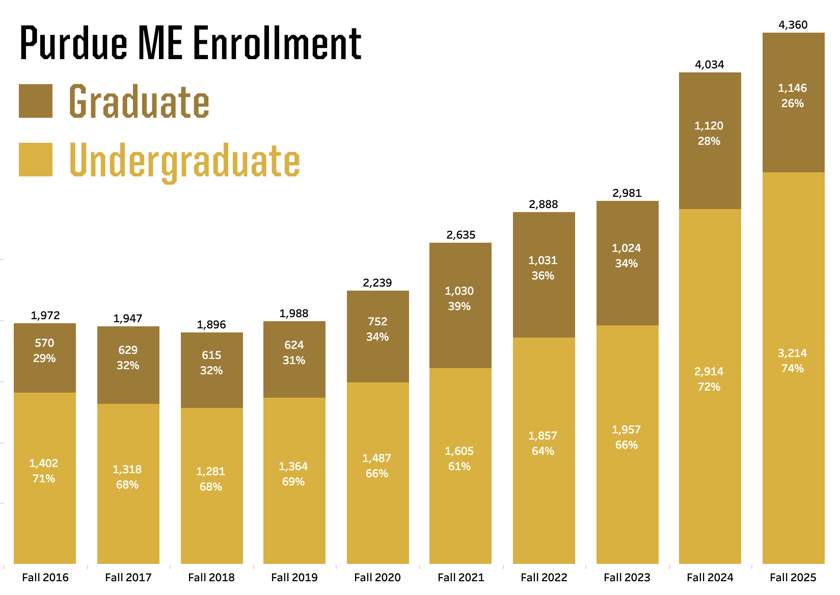 - 3,214 undergraduate students in West Lafayette and Indianapolis (the largest mechanical engineering program in the country)