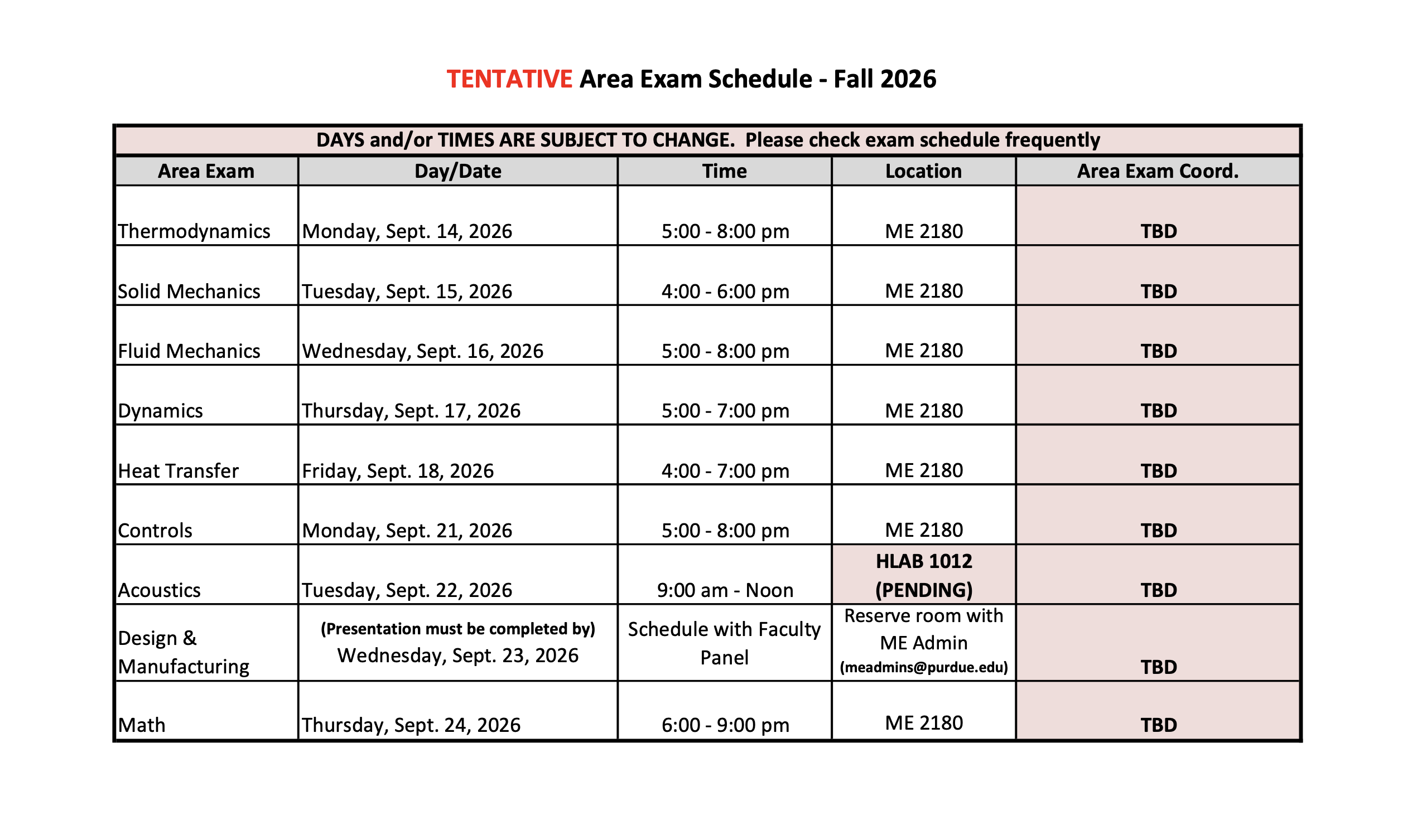The Area Examinations exist to provide assurance that all PhD candidates have sufficient knowledge of fundamental principles in selected areas of Mechanical Engineering. All PhD students must take the Area Exams, including those who do not have Bachelor’s and/or Master’s degrees in Engineering.