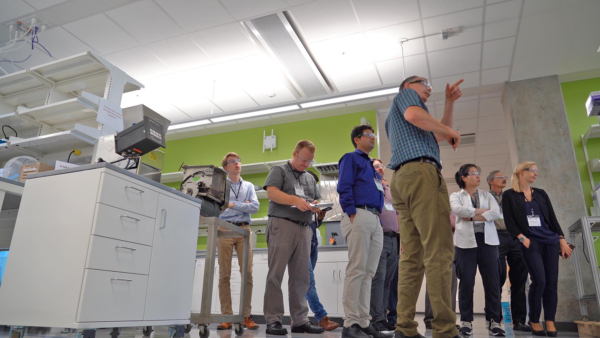 It also presented Purdue the opportunity to showcase its Particle, Powder, and Compact Characterization Laboratory, which is unmatched in academia. “Everything needed to test particles is here,” says Wassgren, who showed off their new space in the Flex Lab building. “We can test particle size, shape, density, flow characteristics, and more. We even have a micro-CT machine that allows us to look at the internal structures of very small materials without breaking them apart.”